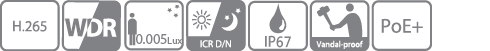 > 1 / 2.8“2兆像素STARVIS™CMOS >強大的25倍光學變焦 >星光技術 > H.265編碼 >最大50 / 60fps @ 1080P >自動跟踪和IVS >支持PoE + > IR距離可達150米 > IP67,IK10